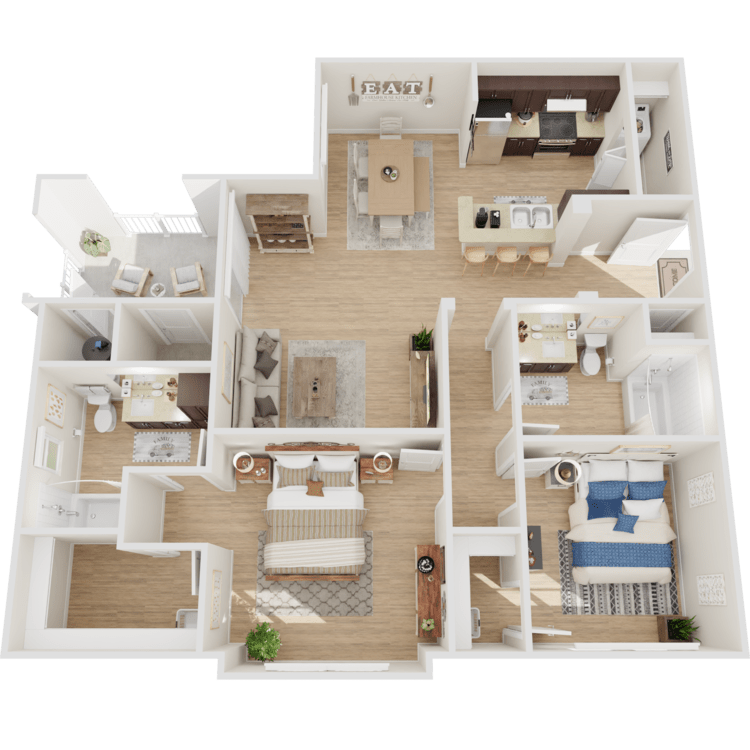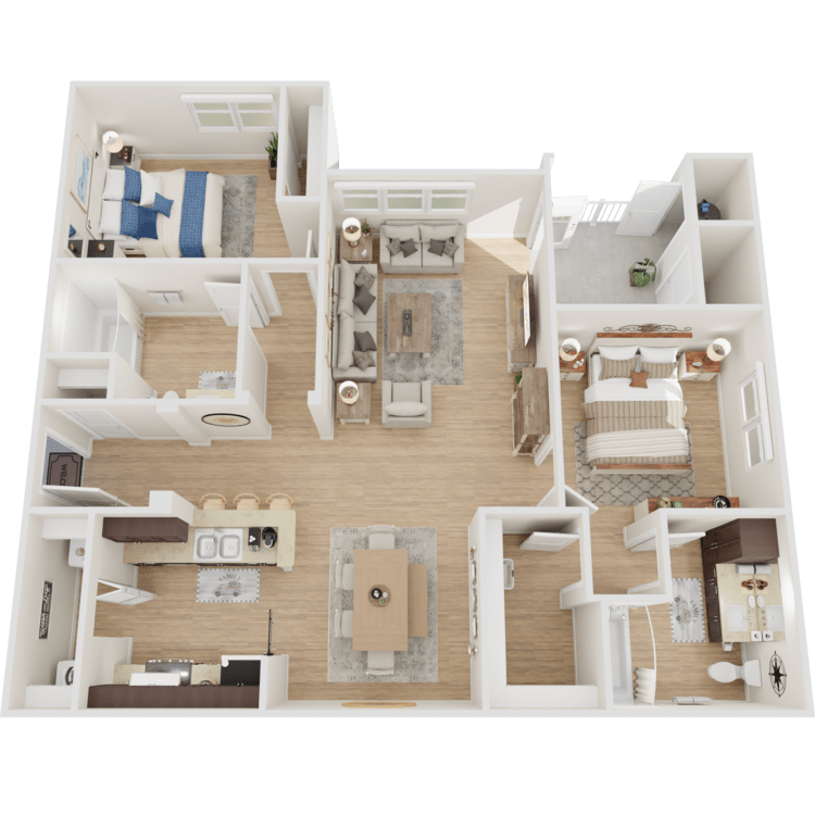 At Tidewater Landing, our one, two, and three-bedroom apartments boast a serene environment with resort-inspired details. Enter expansive living spaces, featuring wood-style plank flooring, and gather in a chef-worthy kitchen with stainless steel appliances, quartz counters, frameless maple cabinetry, and a high-arc faucet. Unwind in a large soaking tub, step out to a spacious patio (with extra storage in select homes), and enjoy the convenience of a full-size washer and dryer inside your residence. Tidewater Landing is a haven from the urban hustle and a rare, memorable backdrop to your lifestyle.